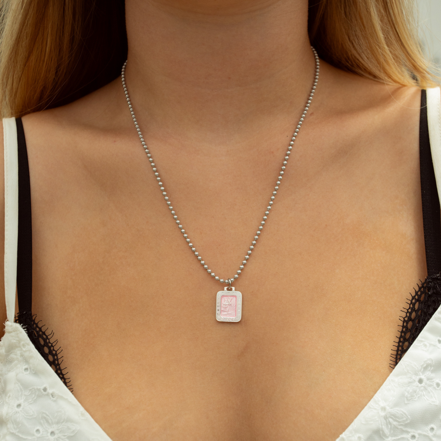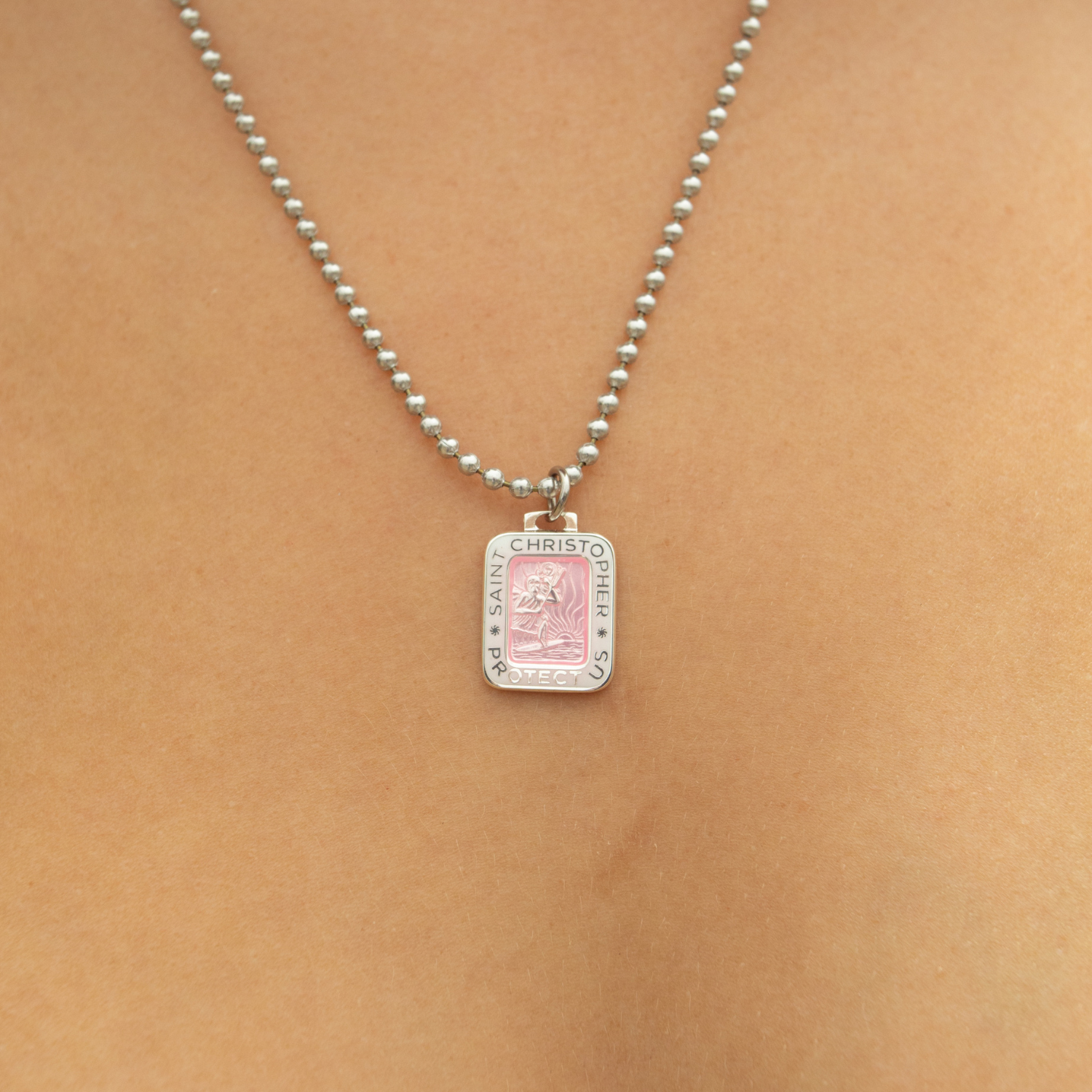 Wir präsentieren unseren neuen rechteckigen St.-Christophorus-Anhänger in Pink und Weiß! Mit einem leuchtend pinken Zentrum, umrahmt von einem klaren weißen Rand, verleiht dieses auffällige Design einem klassischen Favoriten eine verspielte und frische Note. Perfekt für alle, die ihrem Stil gerne einen Farbtupfer und etwas Fröhlichkeit verleihen – dieses Schmuckstück setzt garantiert ein Statement. Tauchen Sie ein in die aufregende Welt dieses bezaubernden Neuzugangs!