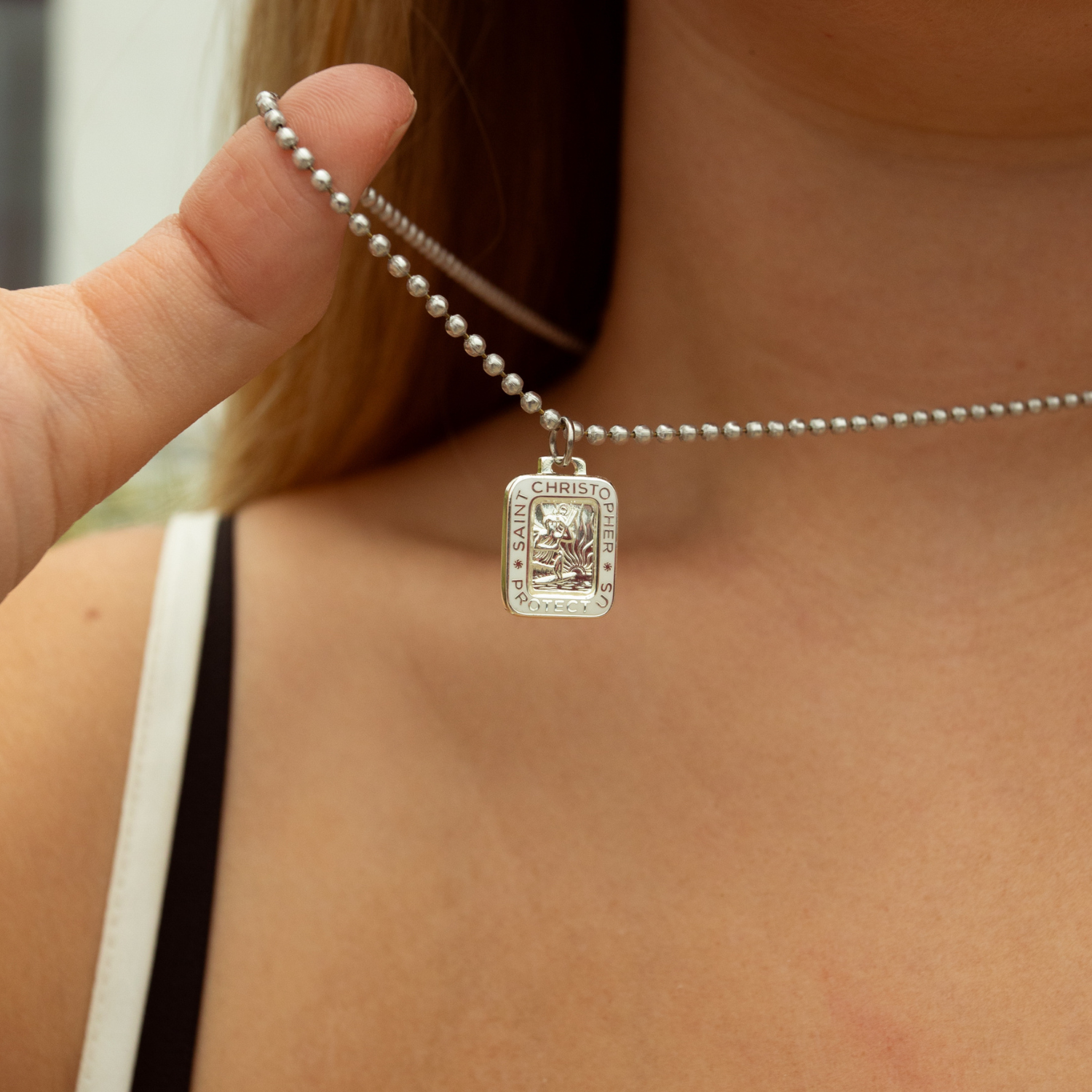 Rechteckiger St.-Christophorus-Anhänger – Silber/Weiß