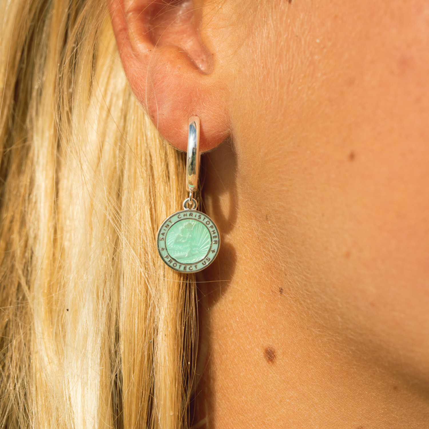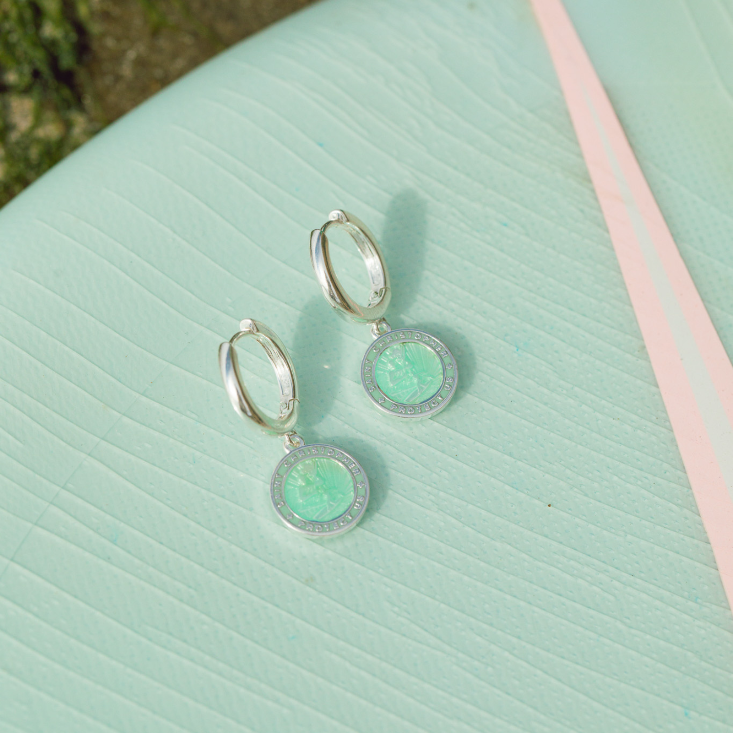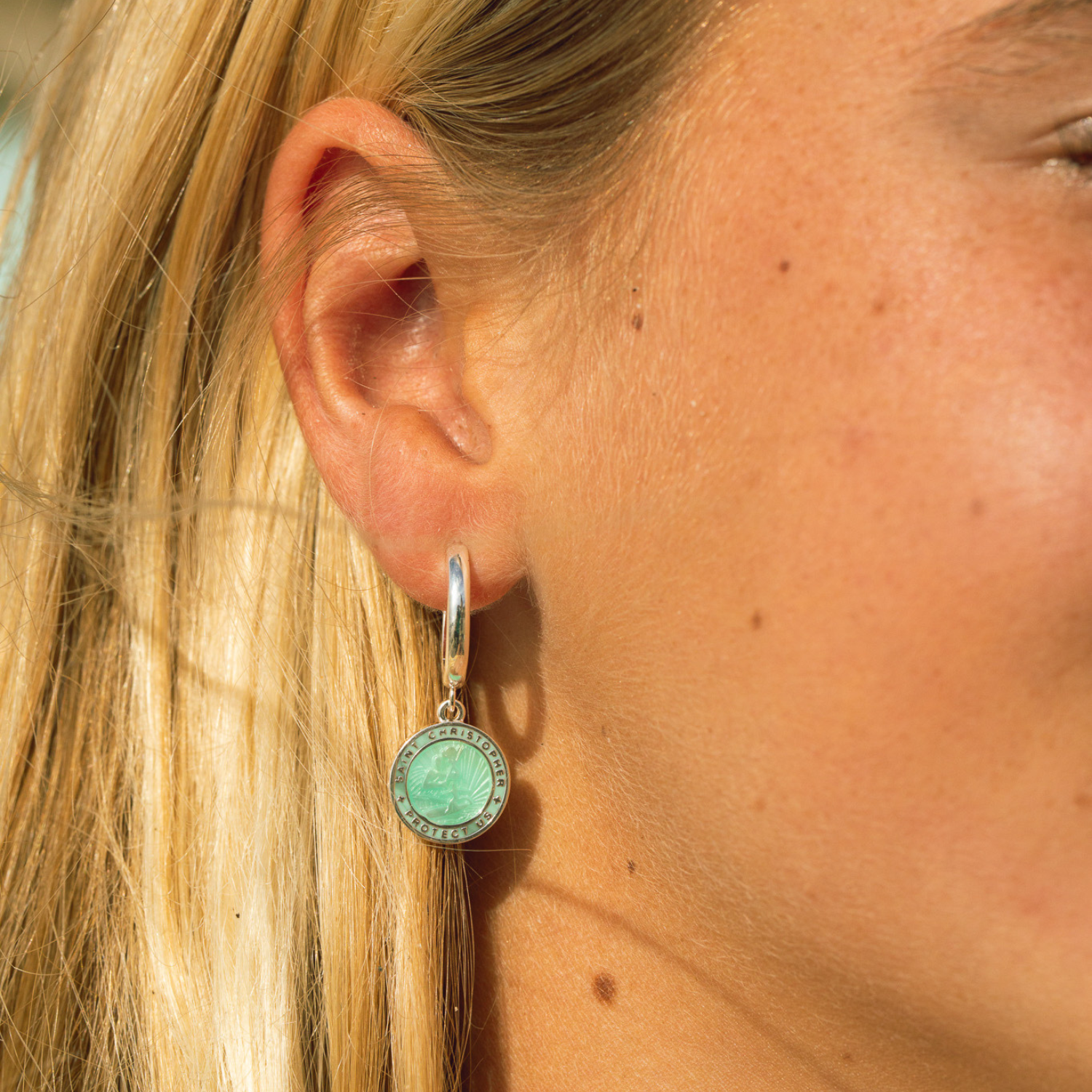 Mit unseren St. Christopher Ohrringen in einem atemberaubenden Meerschaumgrün sind Sie stilvoll geschützt! Leicht und leuchtend – die perfekte Mischung aus Charme und maritimer Eleganz für jedes Outfit.