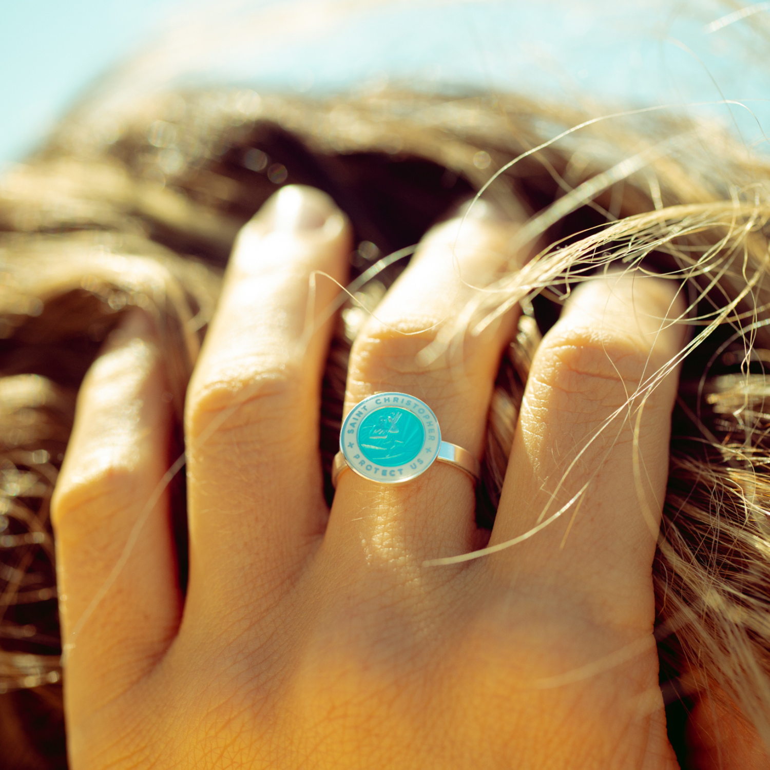 Mit unserem Vintage-Ring des Heiligen Christophorus holen Sie sich den 70er-Jahre-Look zurück. Er ist in vielen leuchtenden Farben erhältlich und wie alle unsere Medaillons äußerst robust. Ein Must-have für Sommerurlauber und Strandliebhaber!