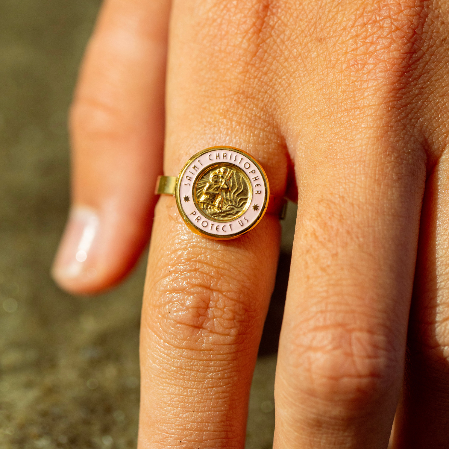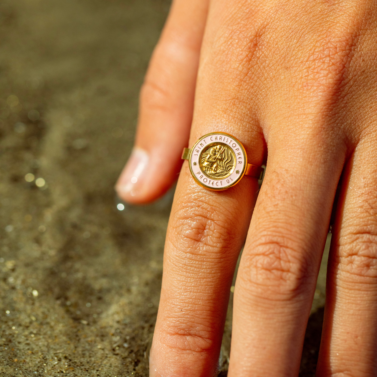 Wir präsentieren unseren neuen St. Christopher Ring in Gold und Pink – ein absoluter Publikumsliebling, jetzt als Ring! Mit seinem leuchtenden Design in Pink und Gold ist dieses Schmuckstück perfekt für Strandliebhaber, Surfer und Abenteurer, die Wert auf Stil und Schutz legen.